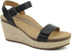 Englin’s Fine Footwear presents the women’s ‘Sydney’ from Aetrex. The Sydney is an espadrille wedge, perfect for those who want a combination of comfort and style. With 8mm of memory foam and the built-in Aetrex Orthotic System, the Sydney provides ultimate comfort along with style and height. Elevate every outfit with this jute and genuine leather wrapped wedge!