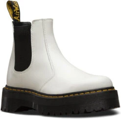 Englin’s Fine Footwear presents the men’s ‘2976 Sooth Leather Platform Chelsea Boot’ from Dr. Martens. The first Dr. Martens Chelsea boot was produced in the 70s, but the actual style dates back to the Victorian era. Today, the 2976 Chelsea boot is a slick, uncompromisingly fashion-forward look for all genders — and with a sure fit and an easy-on, easy-off elasticized gusset, it’s a versatile boot that works with everything. This season, the boot gets an empowering boost from an aggressive, 1 1/2 inch platform sole — and now comes in show-stopping white Smooth leather. Fits true to size.