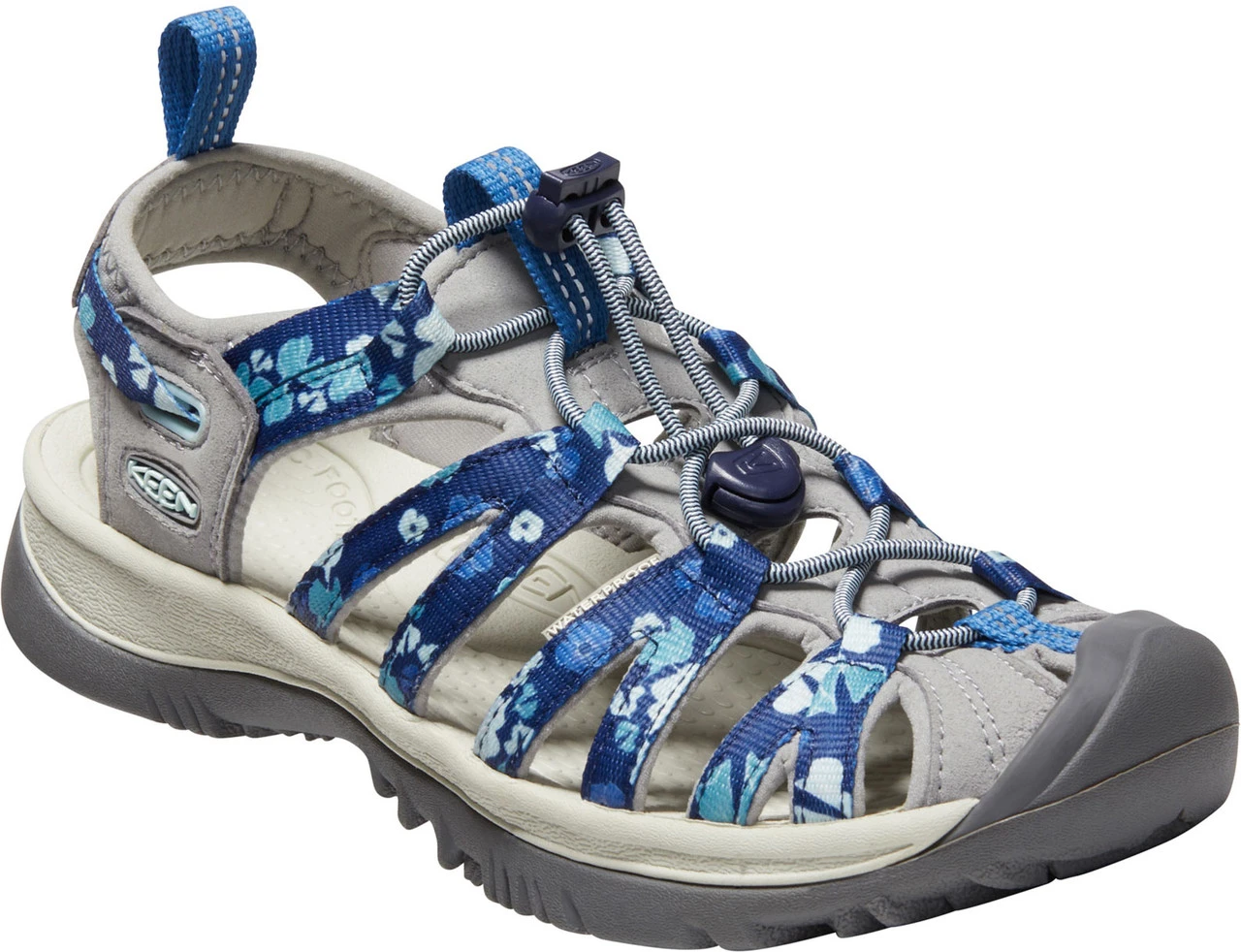 Englin’s Fine Footwear presents the women’s ‘Whisper’ from Keen. Elastic cording gives this lightweight performance sandal a secure fit, easy to adjust in or out of the water. The washable upper makes cleaning easy, and the cushioned footbed provides comfort on the go.
