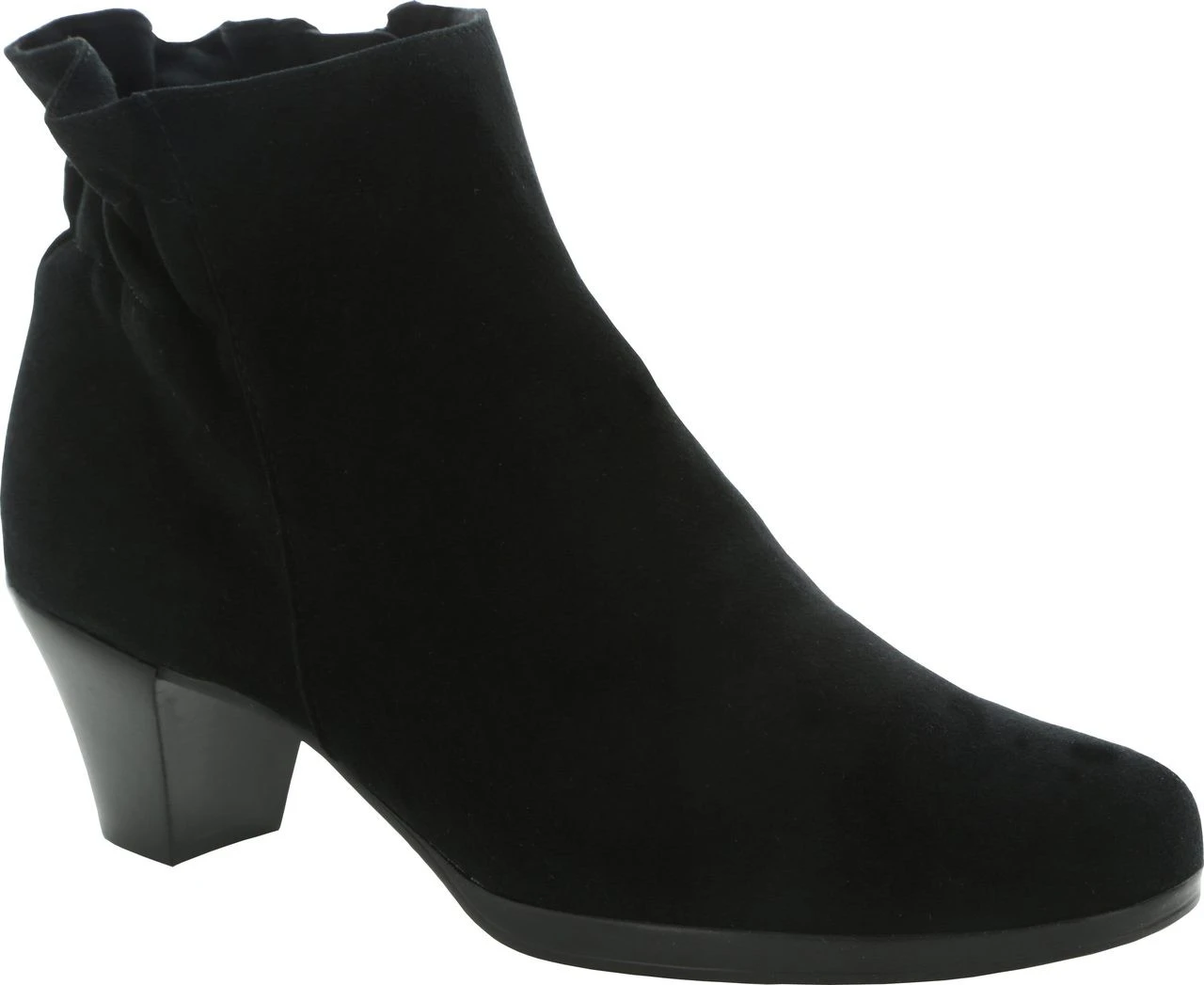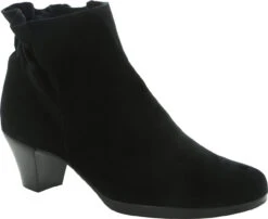Englin’s Fine Footwear presents the women’s ‘Alfie’ from Munro. Classy and fashionable ankle boot with ruching on back of ankle. The goat suede has been treated for water resistance. The inside zipper makes for easy on and off. Comfortable bootie that will complete your ensemble.
