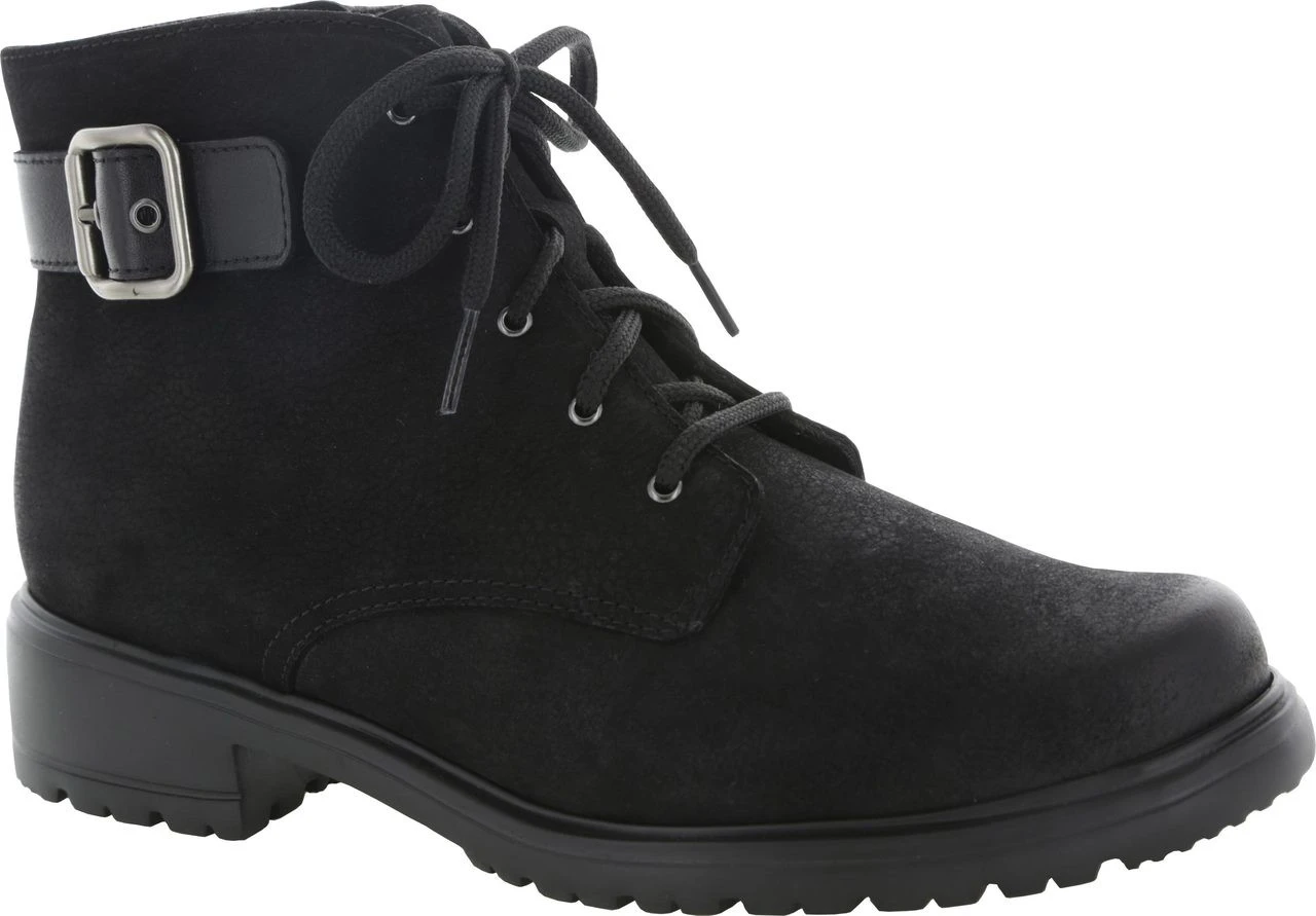 Englin’s Fine Footwear presents the Women’s ‘Bradley’ from Munro. Rugged casual boot with two special fit features, 5-eyelet lacing and inside zipper. The lightweight EVA lug style outsole gives the boot it’s most classic look. The tumbled calf nubuck is water resistant. Show off your sturdy side with this great fitting, comfortable and lightweight boot.