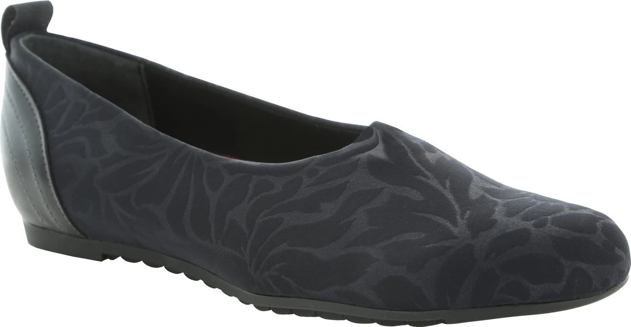 Englin’s Fine Footwear presents the women’s ‘Iriana’ from Munro. The Iriana is a simple slip-on style with a floral design on the fabric that is both attractive and charming. The pattern almost has a lustrous look for a great addition for your dress wardrobe. With a leather trim on the outside heel counter, you can pair this comfortable slip-on with your casual wardrobe, too.