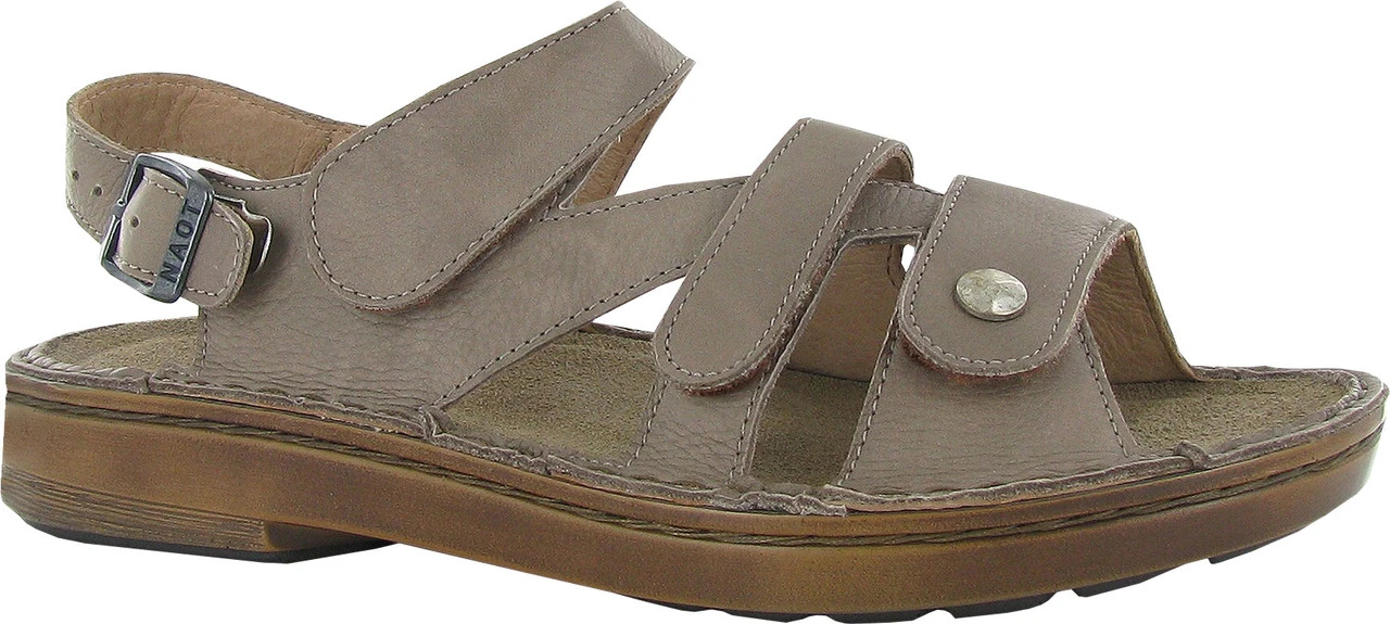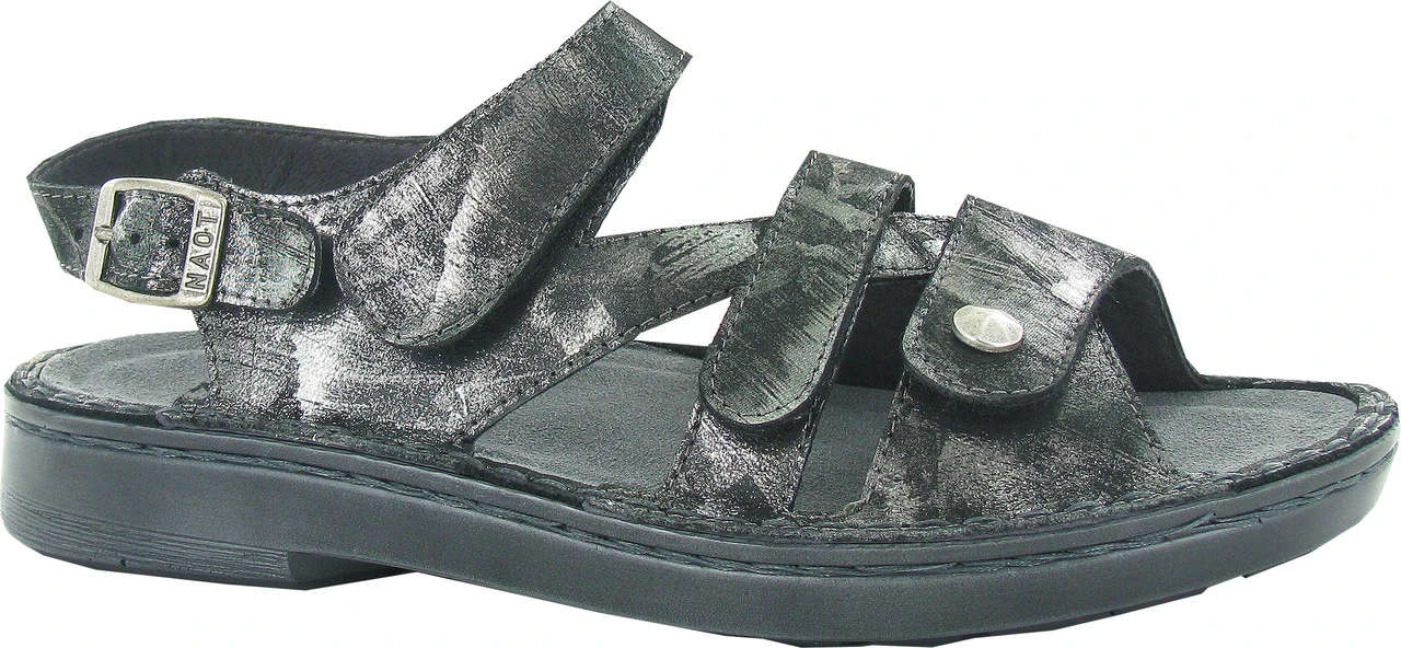 Englin’s Fine Footwear presents the women’s ‘Fleur’ from Naot. The strappy design of the Fleur comfortably secures your foot. A perfect fit with an adjustable buckle & snap closure and four hook & loop straps. The leather lining allows for all day comfort, while Naot’s removable, anatomic cork & latex footbed is wrapped in pampering suede and molds to the shape of the foot with wear. The Utopia Collection features a 1.25″ polyurethane sole which is extremely lightweight and durable.