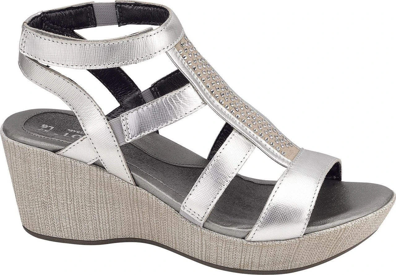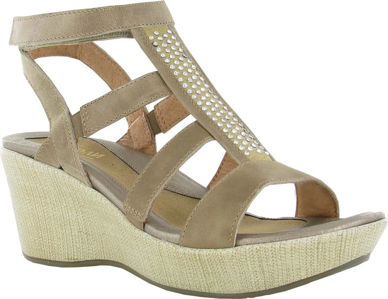 Englin’s Fine Footwear presents the ‘Mystery’ from Naot. The Mystery is a trendy 2.75″ wedge with rhinestone accents going down the middle strap. This sandal has a padded hook & loop closure at the ankle, a slightly padded front strap and gore for adjustability. Naot’s anatomic cork & latex footbed is wrapped in leather with a microfiber center to prevent slipping and molds to the shape of the foot with wear. The Impulse Collection features a TPR sole which is extremely lightweight. This sole offers the look of a 2.75″ wedge without the feel.