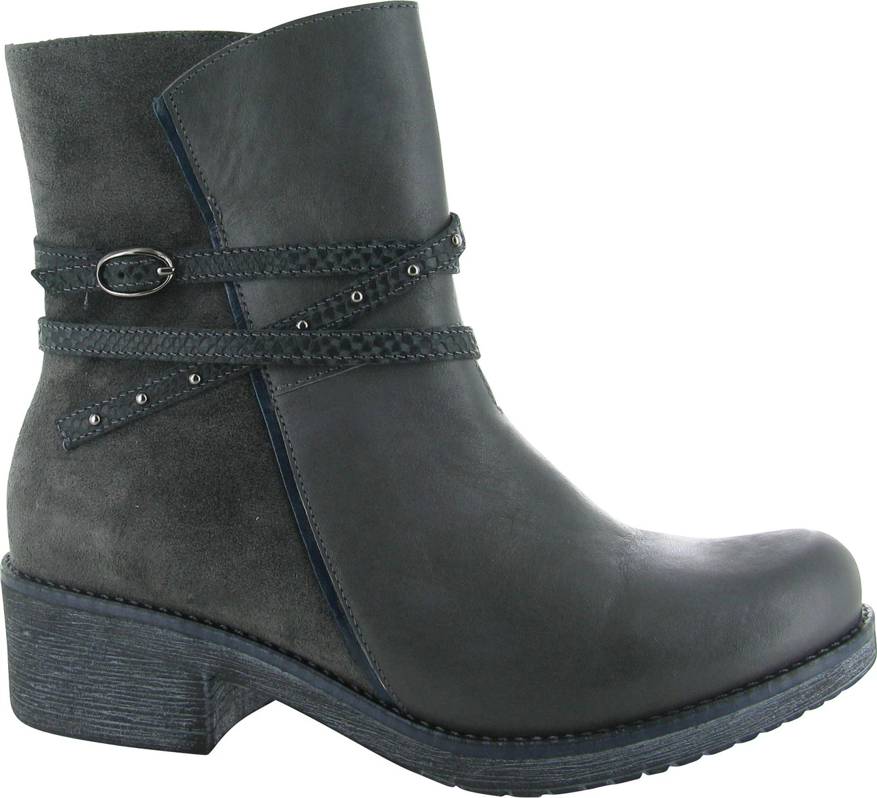 Englin’s Fine Footwear presents the women’s ‘Poet’ from Naot. Like the flow of sweet poetry, the Bohemian Poet is ready to trickle in your wardrobe. Outer criss cross straps donned with trendy, rivet accents hug contrasting leather and suede for a unique look. This style has padded technical lining for comfort, warmth & moisture absorption, and is offered in fabulous, Fall hues, so you can be fashionable and toasty all season long.