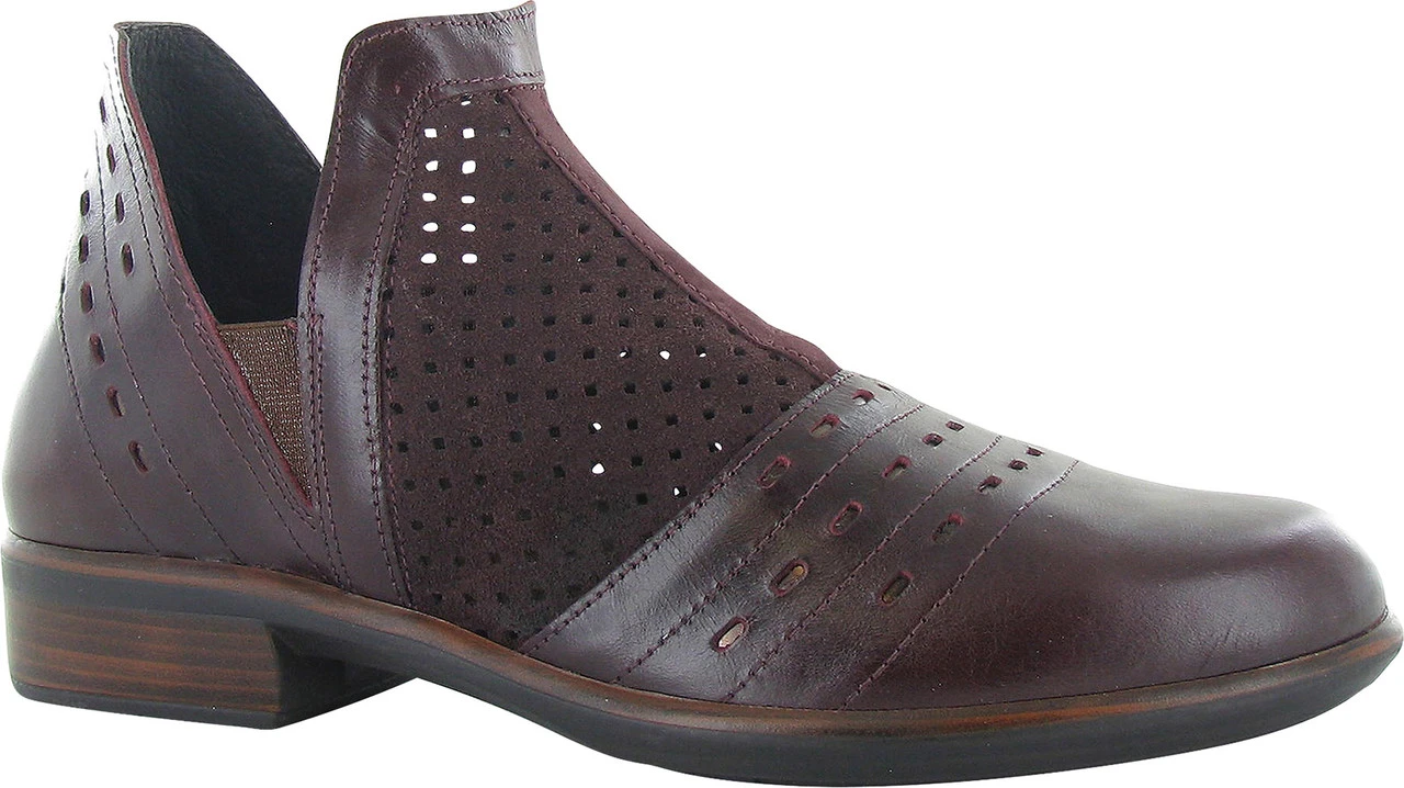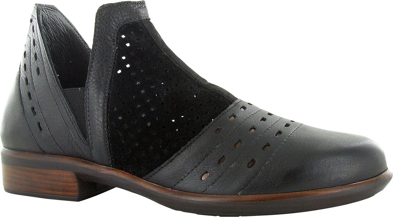 Englin’s Fine Footwear presents the women’s ‘Rivotra’ from Naot. A beautiful ankle boot with contrasting materials and perforated designs, the Rivotra is perfect for transitional wear. The Rivotra comes with Naot’s removable, anatomic cork & latex footbed for all day comfort. The Aura Collection features a 1.5″ polyurethane sole with a metal shank which is extremely lightweight, durable & abrasive to prevent slipping. This collection uses a hand-sewn Strobel construction making it strong and extremely flexible.