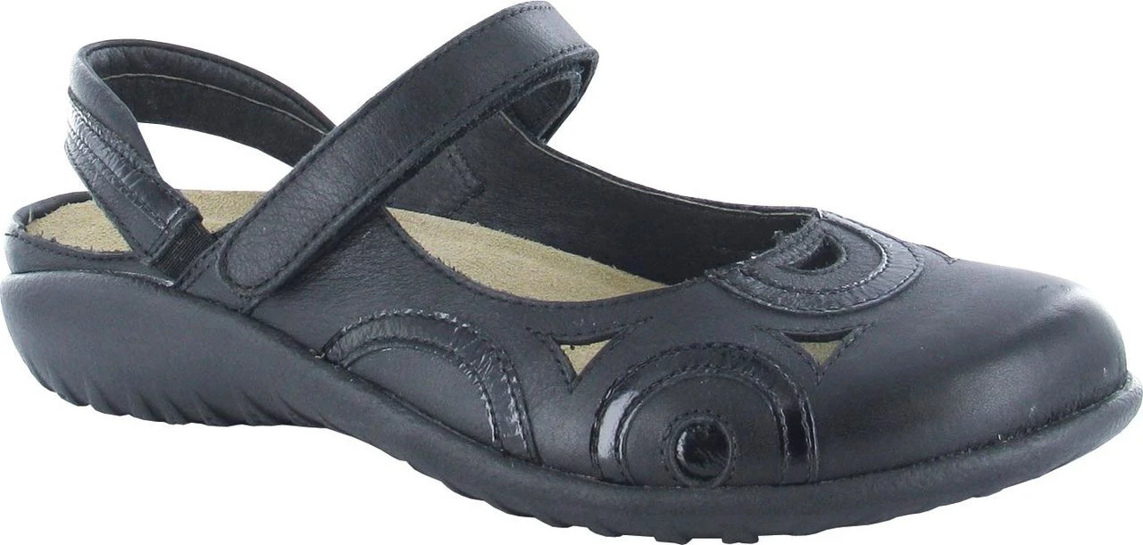 Englin’s Fine Footwear presents the ‘Rongo’ from Naot. The Rongo is a fashion triple threat with a chic slingback design, mary jane strap across the top, and unique contrasting details on the upper. The padded slingback strap allows you to easily slip the Rongo on and off, and the hook-and-loop closure at the instep offers added convenience and adjustability. Fashionable and intriguing to the eye, the Naot Rongo is a perfect style choice, but the incredible comfort features make this cute shoe a true gem. All Naot sandals and shoes, including the Rongo, have an ergonomically contoured footbed that offers luxurious comfort and support. This footbed is made from natural cork, latex, and suede, which creates an environment of flexibility and shock absorption. The cork in Naot footbeds is pliable enough to mold to the foot after some wear, so your Naot shoes will feel as if they are custom-made to fit your feet.