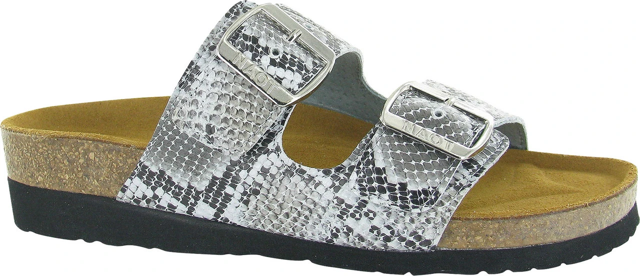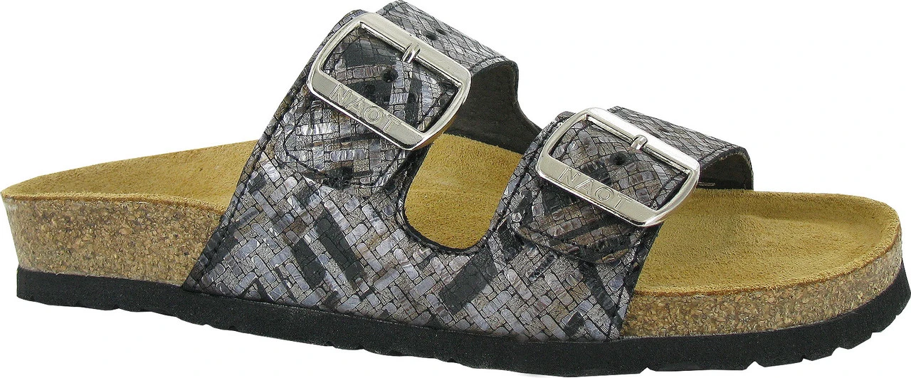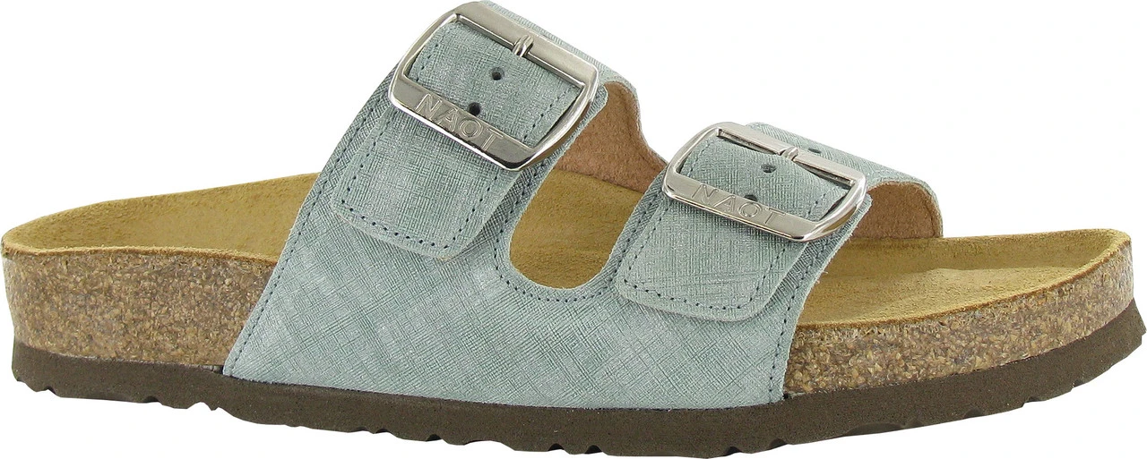 Englin’s Fine Footwear presents the women’s ‘Santa Barbara’ from Naot. The Santa Barbara is a classic everyday slide. This style features two buckle closures for complete adjustability. Naot’s anatomic cork & latex footbed is wrapped in a pampering suede and molds to the shape of the foot with wear. The Classic Collection features a 1.25″ EVA sole.