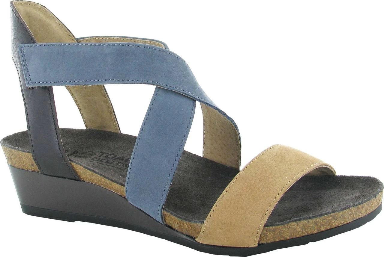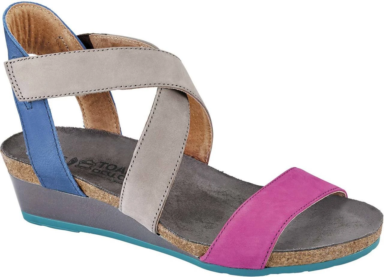 Englin’s Fine Footwear presents the women’s ‘Vixen’ from Naot. The Vixen is a backstrap sandal with a color block design. This style features a hook & loop closure at the instep and hidden gore at the back for adjustability. The Vixen has a padded back & front strap for extreme comfort. Naot’s anatomic cork & latex footbed is wrapped in a pampering suede and molds to the shape of the foot with wear.