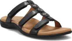 Englin’s Fine Footwear presents the women’s ‘Prize 4’ from Taos. The Prize 4 is a premium leather slide sandal with 3 bands of hook and loop straps offering complete adjustability. Pounded medallion hardware accent the multi-colored strappy upper offering a stylish, versatile look. Featuring an embossed microfiber footbed that is treated with an antimicrobial shield, keeping your feet cool and dry, with soft, cooling gel padding on top of polyurethane for maximum shock absorption. The outsoles are flexible, durable rubber.