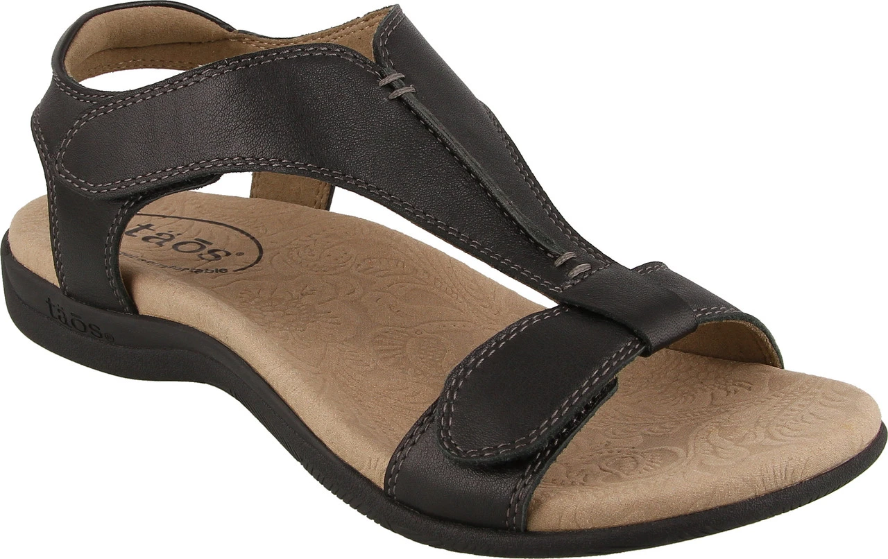 Englin’s Fine Footwear presents the women’s ‘The Show’ from Taos. Welcome to The Show! Premium leather sandal with t-strap design and two adjustable hook and loop straps for a secure fit. Detailed contrast stitching and seam design accent the upper. Imported leather from Italy offers a rich look that is soft and wraps around your feet. Featuring an embossed microfiber footbed that is treated with an antimicrobial shield, keeping your feet cool and dry, with soft, cooling gel padding on top of polyurethane for maximum shock absorption. The outsoles are flexible, durable rubber.