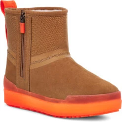 Englin’s Fine Footwear presents the women’s ‘Classic Tech Mini’ from UGG. Nylon trims, zip-up construction, and a standout translucent sole lend a functional workwear aesthetic to this fashion-forward Classic. Made from waterproof suede and bomber nylon with seam-sealed construction, it helps protect from rain while signature UGGplush™ lining delivers our world-renowned wearing experience. Pair with upscale athleisure and workwear pieces, or add a modern accent to any outfit.